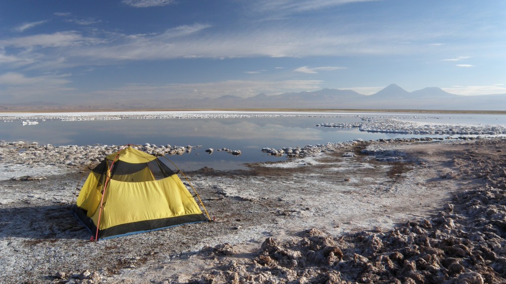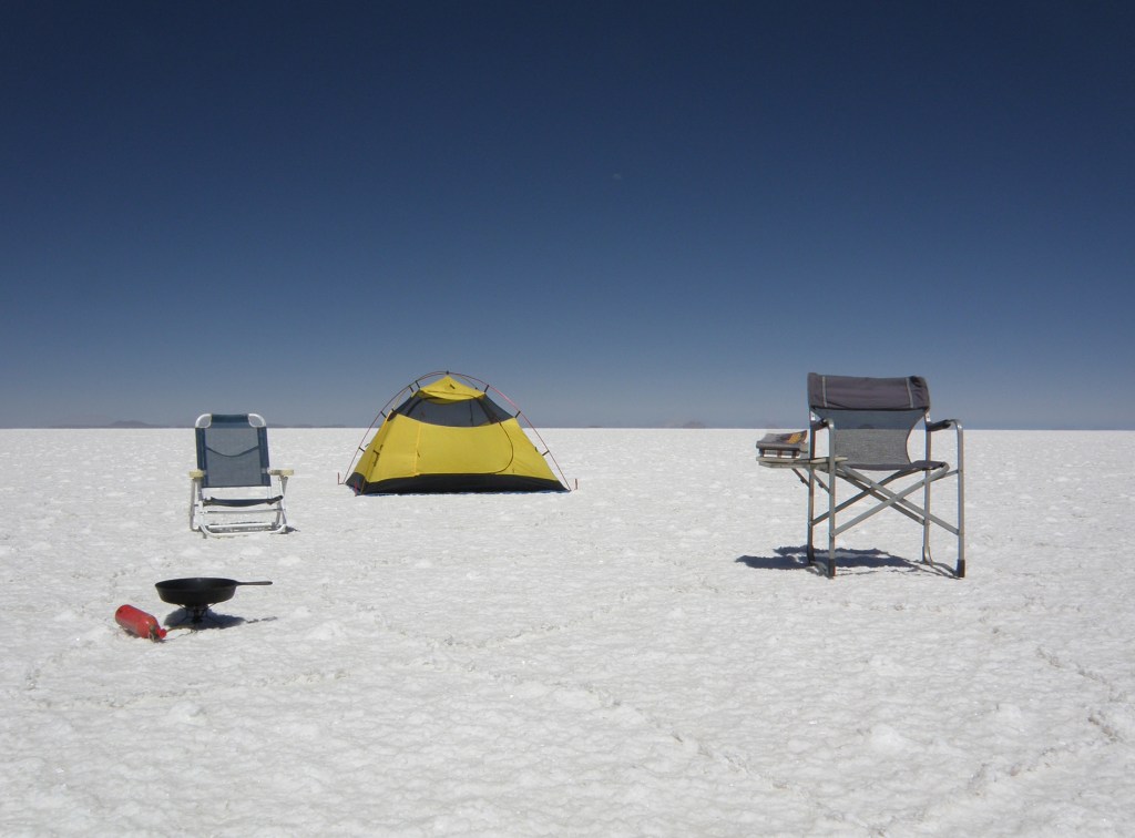 It’s not easy getting tent stakes into salt. If you’re going, bring a rock for this purpose.